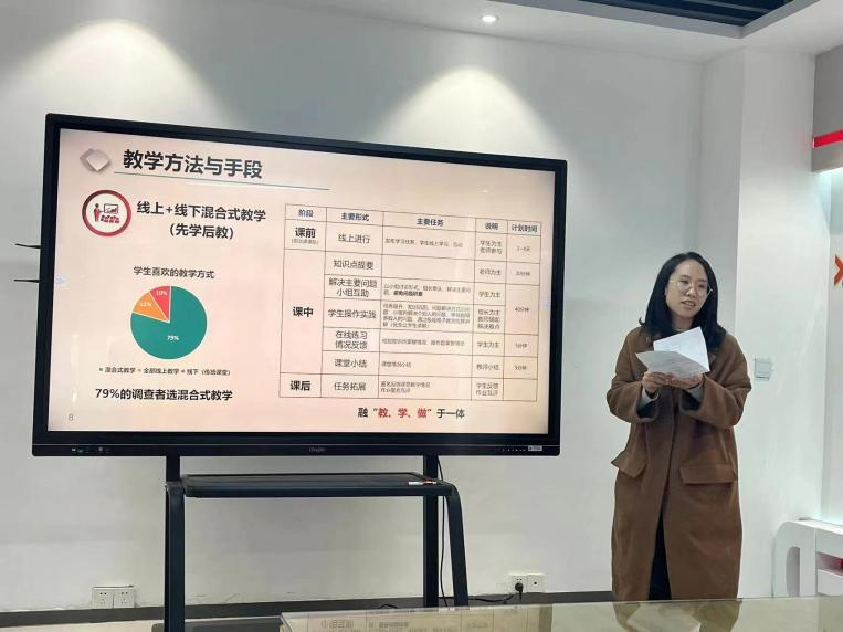 虞帅晶老师就《经济数学》的Matlab基础进行说课。虞老师主要从教学流程的设定、教学方法与手段、信息化技术手段的运用、重难点及对策的分析、课堂教学评价实施、教学效果实现、教学反思七个方面展开说课,对本次课堂的授课过程进行了细致地讲解,结合多种教学手段,整个教学过程做到了融“教、学、做”为一体。