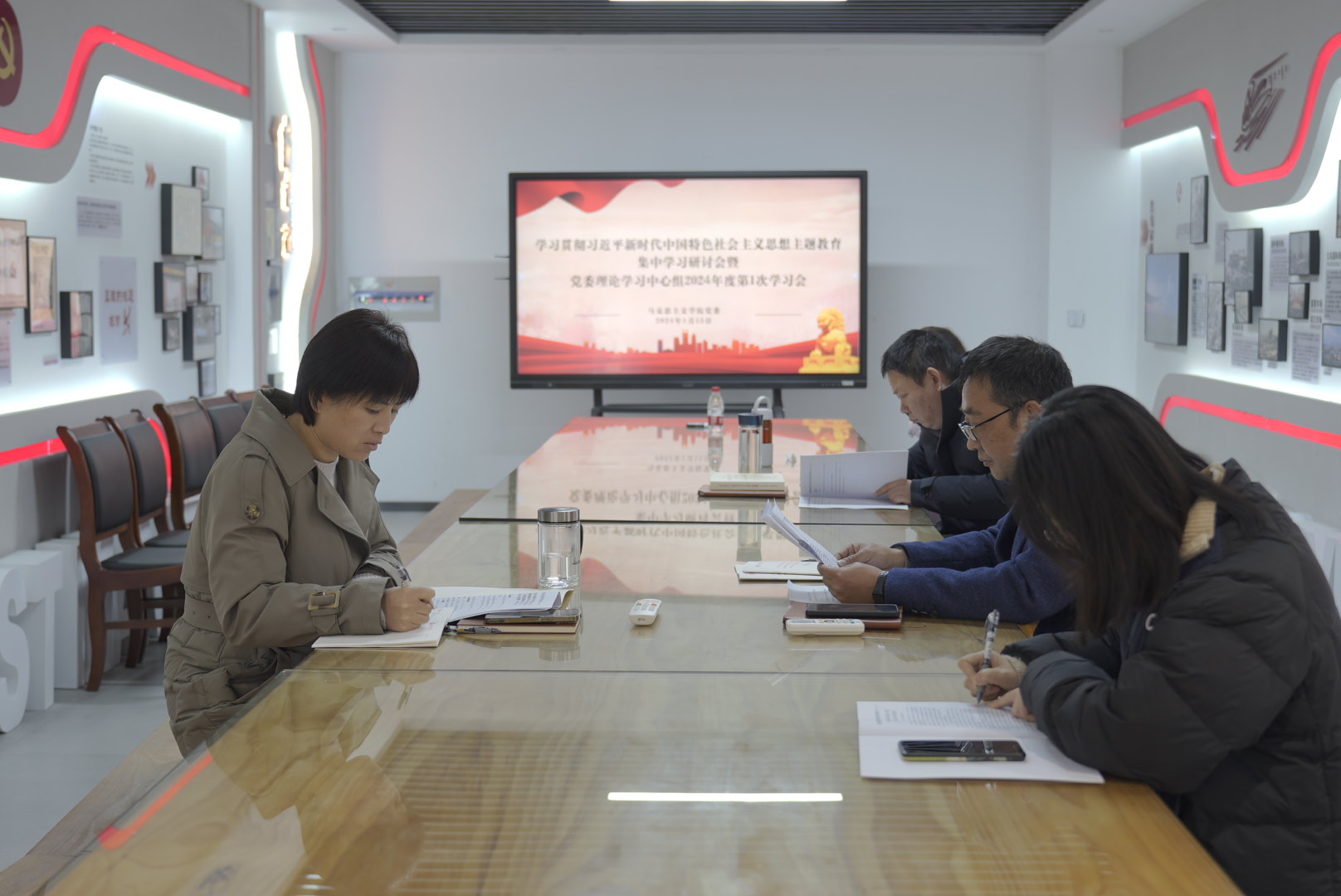 1月15日下午,学院在望道行实践教学中心举行党委理论学习中心组2024年度第1次集中学习会,学习领会习近平总书记在中央政治局专题民主生活会上的重要讲话精神、习近平总书记关于严肃党内政治生活、树立和践行正确政绩观的重要论述、习近平总书记关于金华工作的重要讲话和重要指示批示精神等,进一步加强学院党委理论学习水平,增强学院党委的战斗力。会议由党委副书记吴雷主持,学院领导班子出席会议。