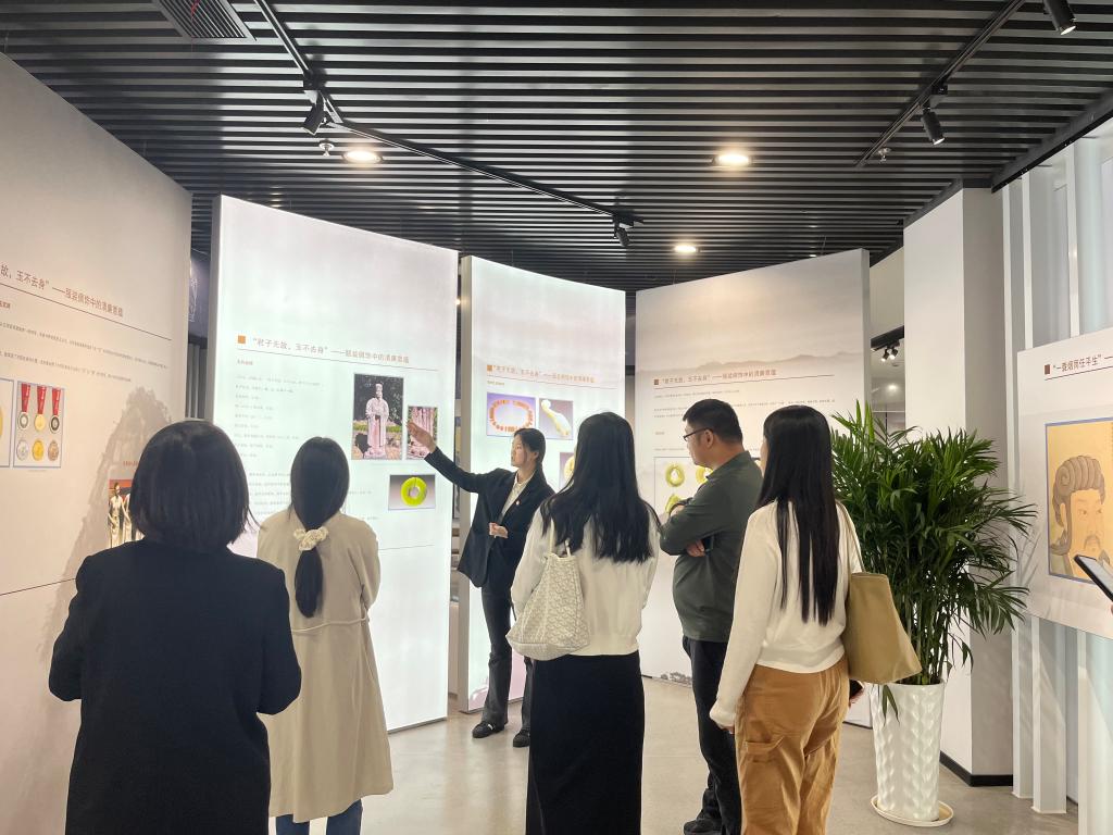 赵勇从我校思政课程体系建设、教学方法改革、实践育人模式探索等方面的实践经验进行了详细介绍。他提出,面对新时代背景下思政教育的新要求、新挑战,两院能够加深加强合作,实现资源共享、优势互补,共同提升思政教育的实效性和影响力。双方代表围绕“思政课课程改革”“马克思主义学院制度建设”“教研科研”“社会服务”“实践教学”“大思政课”建设等议题展开了热烈讨论。交流会后,赵勇一行参观了浙江纺织服装职业技术学院校内实践教学基地——宁波市经纬廉洁文化馆,感受蕴含在传统服饰中的廉洁文化。