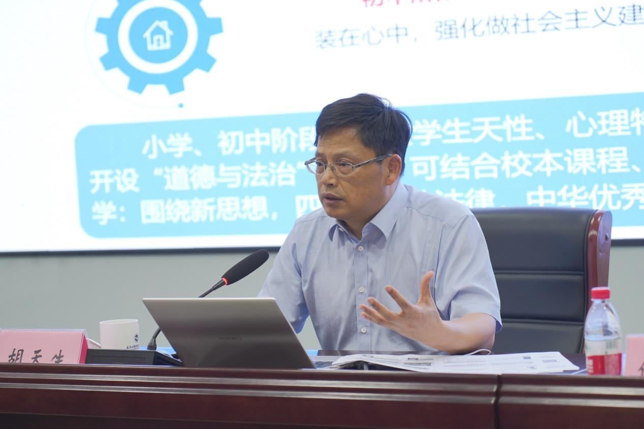 在讲座中,胡教授以“何为一体化?为何一体化?如何一体化?”为核心问题,进而深刻阐述了思政教育一体化的重要性。他强调,在当今这个快速变化的时代,大中小学思政教育必须形成一个紧密相连、层层深入的完整体系。这样的体系不仅能够全面提升学生的思想道德水平、政治觉悟,还能培养他们的综合素养,为社会的和谐发展奠定坚实基础。为了实现这一目标,胡教授提出了五大实践策略,高站位顶层设计:加强思政教育一体化全域联动、高起点谋篇布局:探索思政教育一体化协同模式、高标准队伍建设:打造思政教育一体化教研队伍、高效能纵横衔接:促进思政教育一体化螺旋上升、高水平区域特色:推动思政教育一体化提质增效。这些策略既具有理论高度,又贴近实际,为思政教育一体化的实施提供了有力的指导。