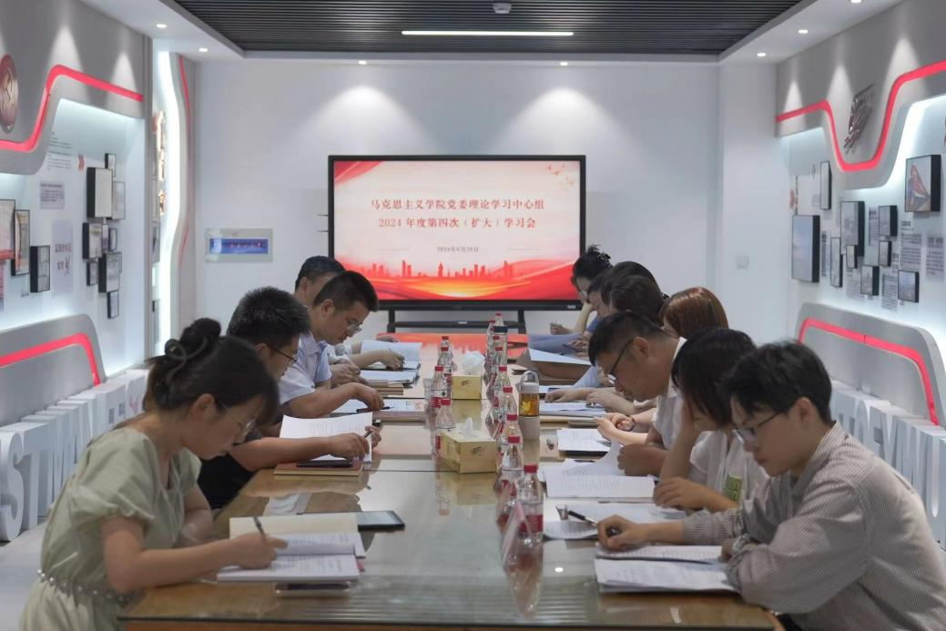 6月28日上午,学院召开党委理论学习中心组2024年度第四次(扩大)学习会,专题学习习近平总书记对学校思政课建设作出的重要指示精神、浙江省委教育工作领导小组会议精神、《普通高等学校教师党建和思想政治工作质量标准(试行)》及《义乌工商职业技术学院基层党建“争先攀高”三年行动方案(2024-2026年)》。学校党委委员、宣传部部长郑伟俊到会巡听指导,教务处负责人、后勤资产管理处、宣传部相关同志列席会议。马克思主义学院党委委员、办公室负责人、教科办负责人、思政课教研部主任、各党支部书记参加会议。会议由学院党委负责人主持。