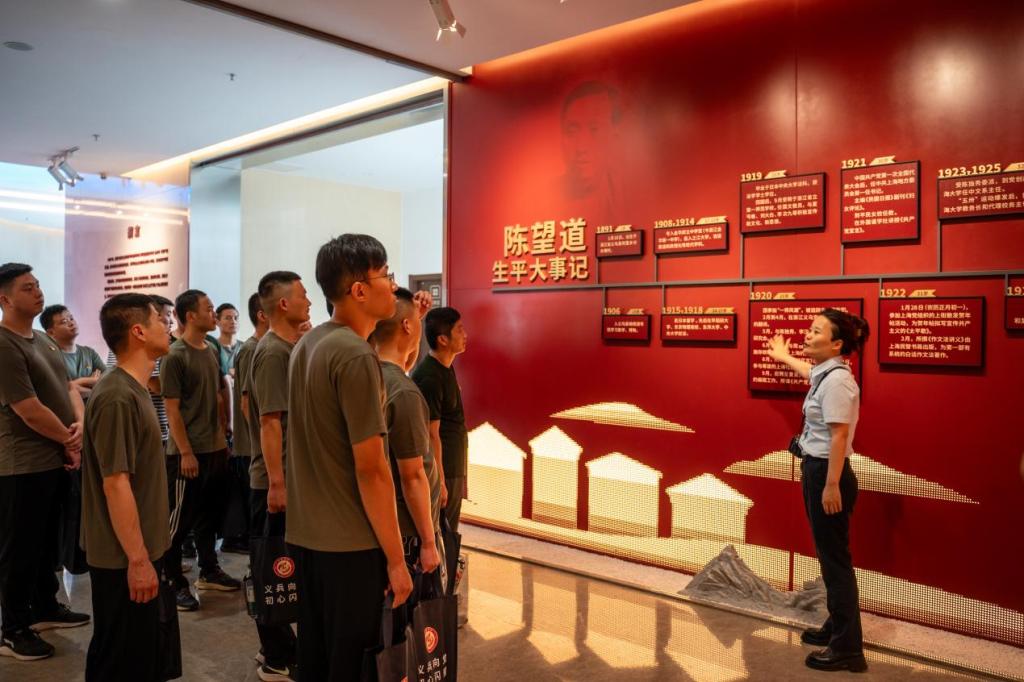 活动的首站来到了望道展示馆。在讲解员绘声绘色、细致入微的解说下,退役士兵们专心致志地了解了陈望道先生波澜壮阔的生平事迹,尤其是他翻译《共产党宣言》的那段传奇经历。在此过程中,他们仿佛穿越时空,回到了那个激情燃烧的岁月,深刻感受到了先辈们坚定如磐的信仰和无私奉献的精神。紧接着,在庄严肃穆的氛围里,退役士兵们郑重地举起右手,重温入党誓词。那一声声铿锵有力的誓言,在展示馆内久久回荡,进一步坚定了他们的理想信念,也充分彰显了他们对党和人民的无限忠诚。