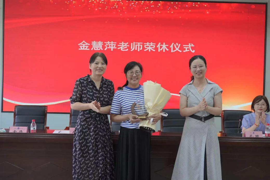 紧接着,会议举行了老教师金慧萍的荣休仪式。学院领导对金慧萍老师的辛勤付出表示衷心感谢,并祝愿她在退休后的生活中幸福安康,常回来看看。金老师寄语学院全体教职工,尤其是年轻教师,要志存高远、脚踏实地,不断在实践中锻炼本领、提高能力,为自身发展和学院建设打下坚实基础。