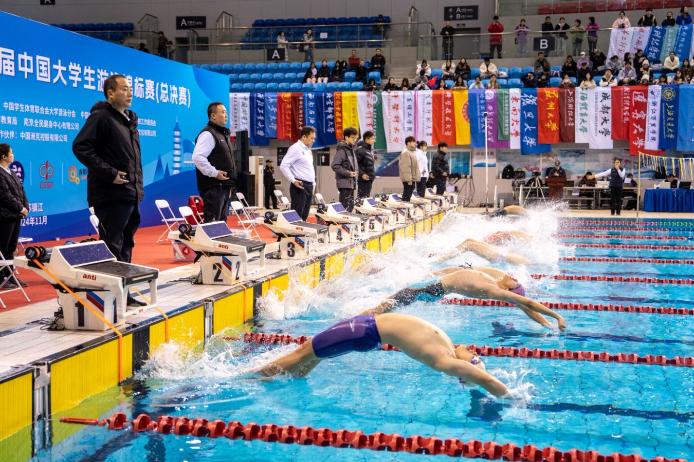 11月25日-30日,第23届中国大学生游泳锦标赛(总决赛)在江苏省镇江市举行,作为中国大学生游泳项目本年度最高级别的比赛,总计有150所高校参赛,包括清华大学、北京大学、中山大学、浙江大学、暨南大学、上海交通大学等。