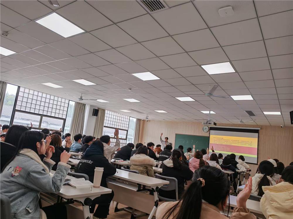 在公开课上,李老师以互动游戏“模拟村民大会”为引,为同学们阐明了民主的形式与民主实质的区别,并通过中西方民主制度的对比以及现实案例的导入,充分阐释了我国的全过程人民民主是全链条、全方位、全覆盖的民主,是最广泛、最真实、最管用的民主。