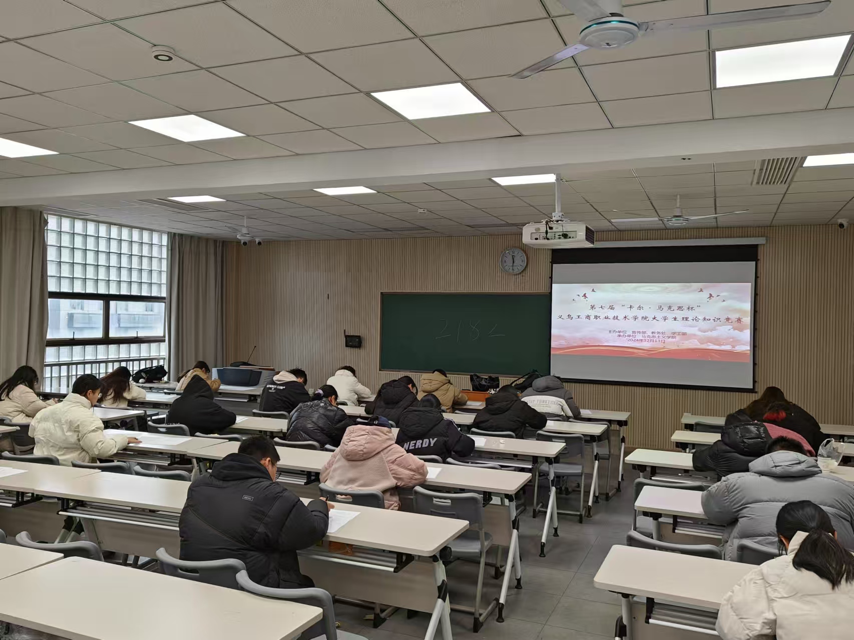 12月13日上午,第七届“卡尔·马克思杯”义乌工商职业技术学院大学生理论知识竞赛决赛于春晗楼401顺利举行。本次竞赛以“青春心向党 爱上真理味 筑梦新时代”为主题,由宣传部、教务处、学工部主办,马克思主义学院承办,旨在“以赛促学”“赛学结合”,激发青年学子的政治理论学习热情,激励青年学生奋力书写不负党和祖国人民殷切期待的青春篇章,扎实推进大学生思政理论教育走深走实。