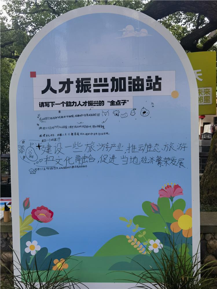 村里的百年古树浓荫如盖,成为最庄严的课堂。义乌工商职业技术学院的青年学子带领小学生深入调研,将撰写的李祖村发展“青春方案”娓娓道来——从挖掘特色农产品的电商推广策略,到打造研学旅行IP的创意构想,再到活化古村文化的科技赋能建议。充满激情与洞察力的发言,不仅是对“人才振兴”的最佳诠释,更让在场的小学生们看到了知识如何反哺乡土,点燃了心中对未来建设家乡的憧憬。