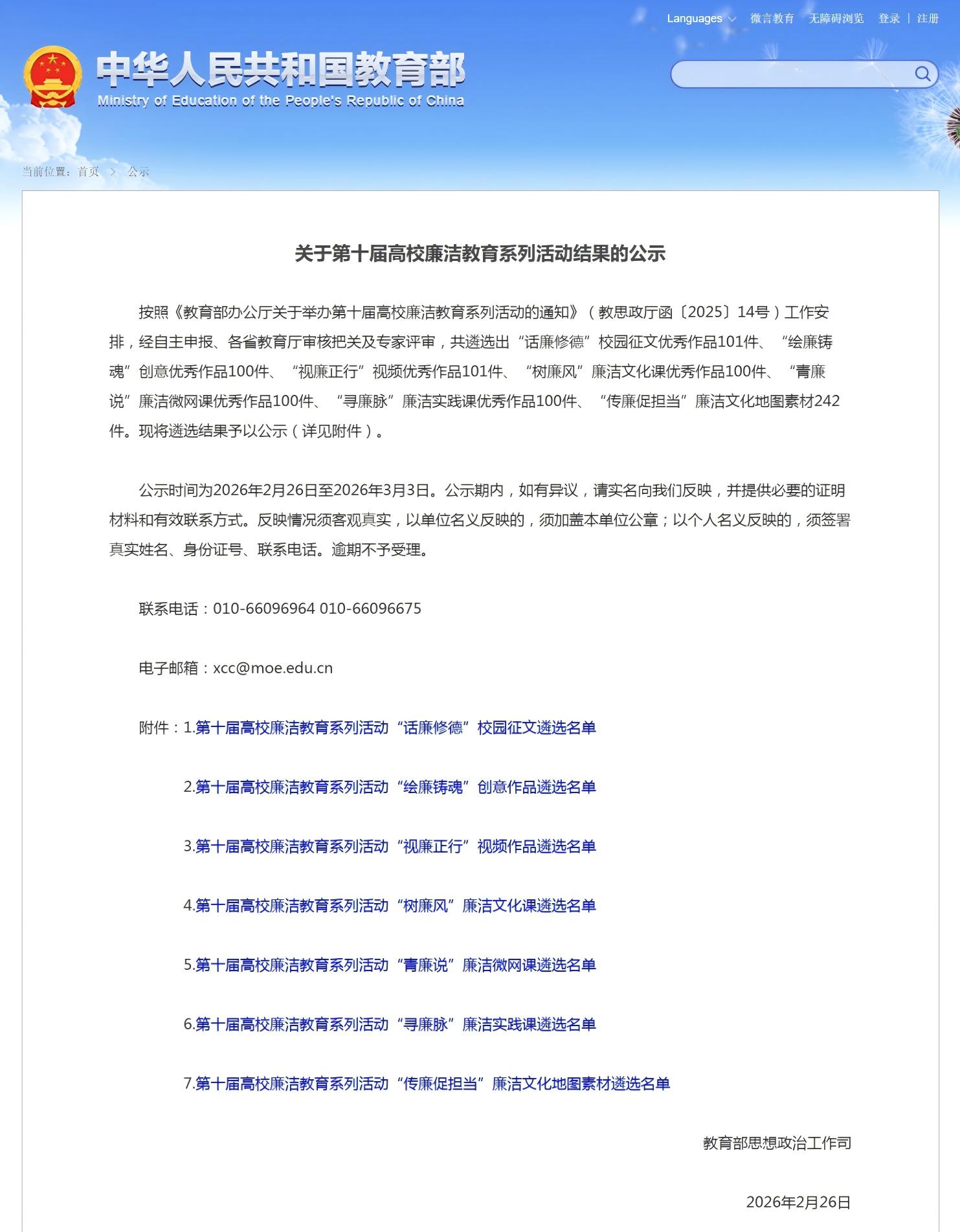 本次第十届高校廉洁教育系列活动以“清风育德守初心 廉洁笃行担使命”为主题,聚焦立德树人根本任务,深化新时代高校廉洁文化建设,其中“青廉说”廉洁微网课单元旨在通过微视频形式,引导青年学子深挖廉洁典故、讲述廉洁故事,形成青年影响青年的廉洁传播效应。活动自启动以来,吸引全国各高校广泛参与,经自主申报、各省教育厅审核及专家评审,最终遴选出100件入围作品。