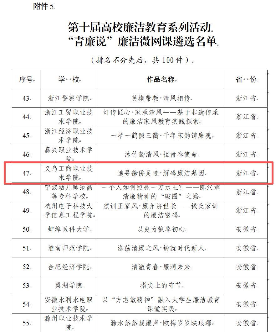 此次作品入选,是我院深耕地方特色廉洁文化、深化廉洁文化育人的重要成果。下一步,我院将以此次入选为契机,持续深挖地方名人资源与特色文化中的廉洁元素,推动廉洁教育与地方文化深度融合,将廉洁教育融入铸魂育人全过程,打造更多兼具本土特色与时代内涵的优质廉洁教育作品,引导广大青年学子以廉修身、以洁修德,成长为堪当民族复兴大任的时代新人。