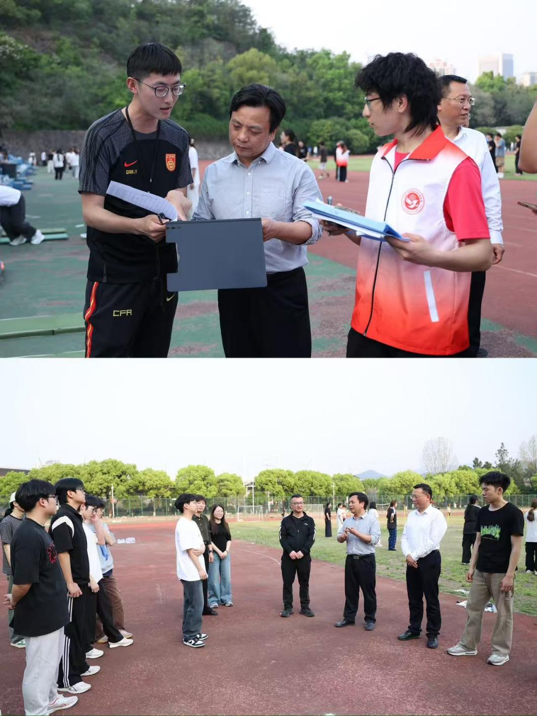 随着2026年全省高校学生体质健康状况抽测工作的临近,为深入了解此次抽测学院的备测情况,进一步激发师生训练热情,确保我校抽测工作安全、有序、高质量完成,4月9日,校党委副书记叶斯源一行深入抽测训练现场,亲切慰问正在积极备战的师生团队。