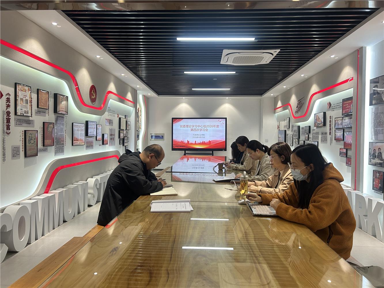 为深入学习贯彻习近平总书记关于总体国家安全观的重要论述,全面落实上级及学校关于校园安全隐患大排查大整治的工作部署,4月29日上午,马克思主义学院在望道行实践教学中心召开2026年党委理论学习中心组第四次学习会。学院党政班子成员、综合办负责人、宣传员参加会议,会议由学院党委书记吴赛男主持。