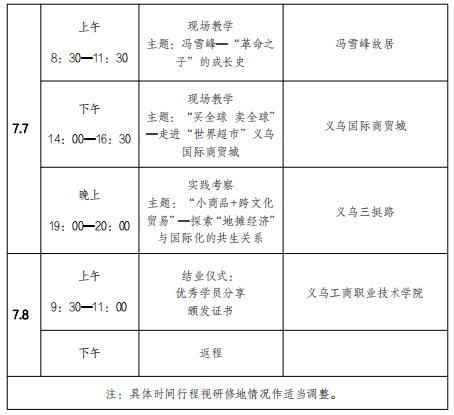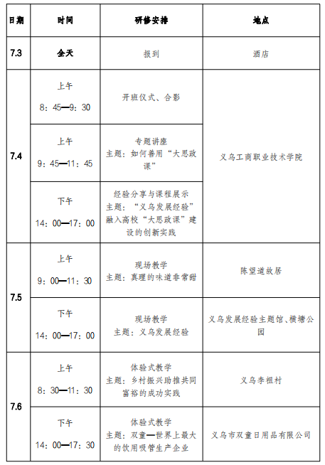 义乌是《共产党宣言》中文全译本首译地、改革开放先行地和习近平新时代中国特色社会主义思想的重要萌发地,也是“真理的味道”大思政课品牌的起航地和精神源头,更是习近平总书记高度关注、深切关怀的地方。为学习贯彻党的二十大和二十届二中、三中全会精神,落实《全面推进“大思政课”建设的工作方案》《普通高校思政课教师队伍建设规划》(2025-2027年),深刻领悟新时代党的创新理论的真理力量,助力思政课教师讲好中国故事、解码发展奇迹。义乌工商职业技术学院拟组织开展跟随习近平总书记考察足迹的专题实践研修。现将有关事项通知如下: