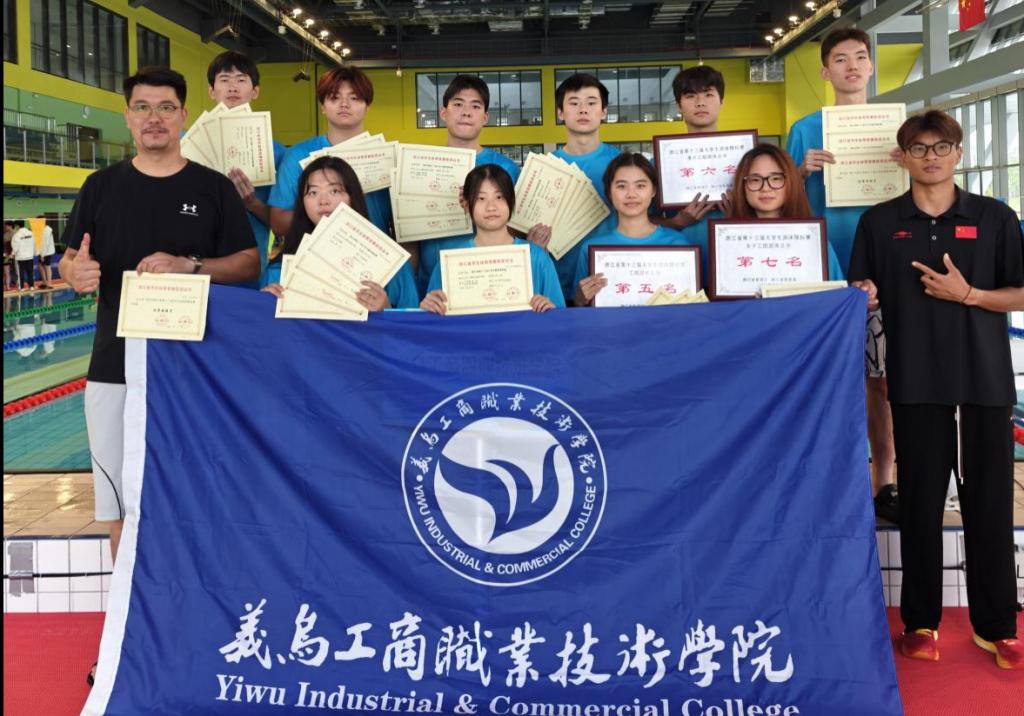 2024年5月31日至6月2日,浙江省第十三届大学生游泳锦标赛在玉环市奥体中心游泳馆火热举行。来自全省高校48支代表队,524名运动员,在湛蓝的泳池中劈波斩浪、一绝高下。参赛院校和参赛人数均为历史之最,是该赛事办赛以来规模最大的一次。我校游泳队成员共取得两枚金牌一枚银牌一枚铜牌教练员王志强老师被评为优秀教练员,王熠轩蒋宇超被评为优秀运动员